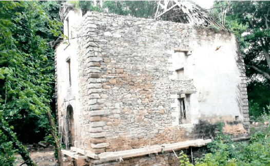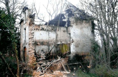 Pavillion du XVIIe siècle qui s’était éffondré. Il a nécessité un mise en oeuvre de boulin,une technique ancienne d’echaffaudage et une Reconstruction minutieuse de plus de 40 m³ de murs en pierre.