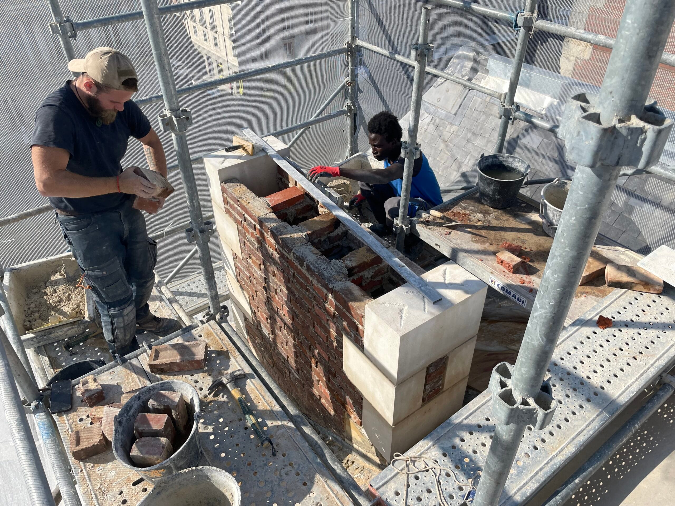 Nous réalisons tous travaux de cheminées : restauration de souches, remise en état des maçonneries, sécurisation des conduits et travaux de finition. Notre expertise du bâti ancien garantit des interventions durables, sûres et adaptées aux exigences du patrimoine.